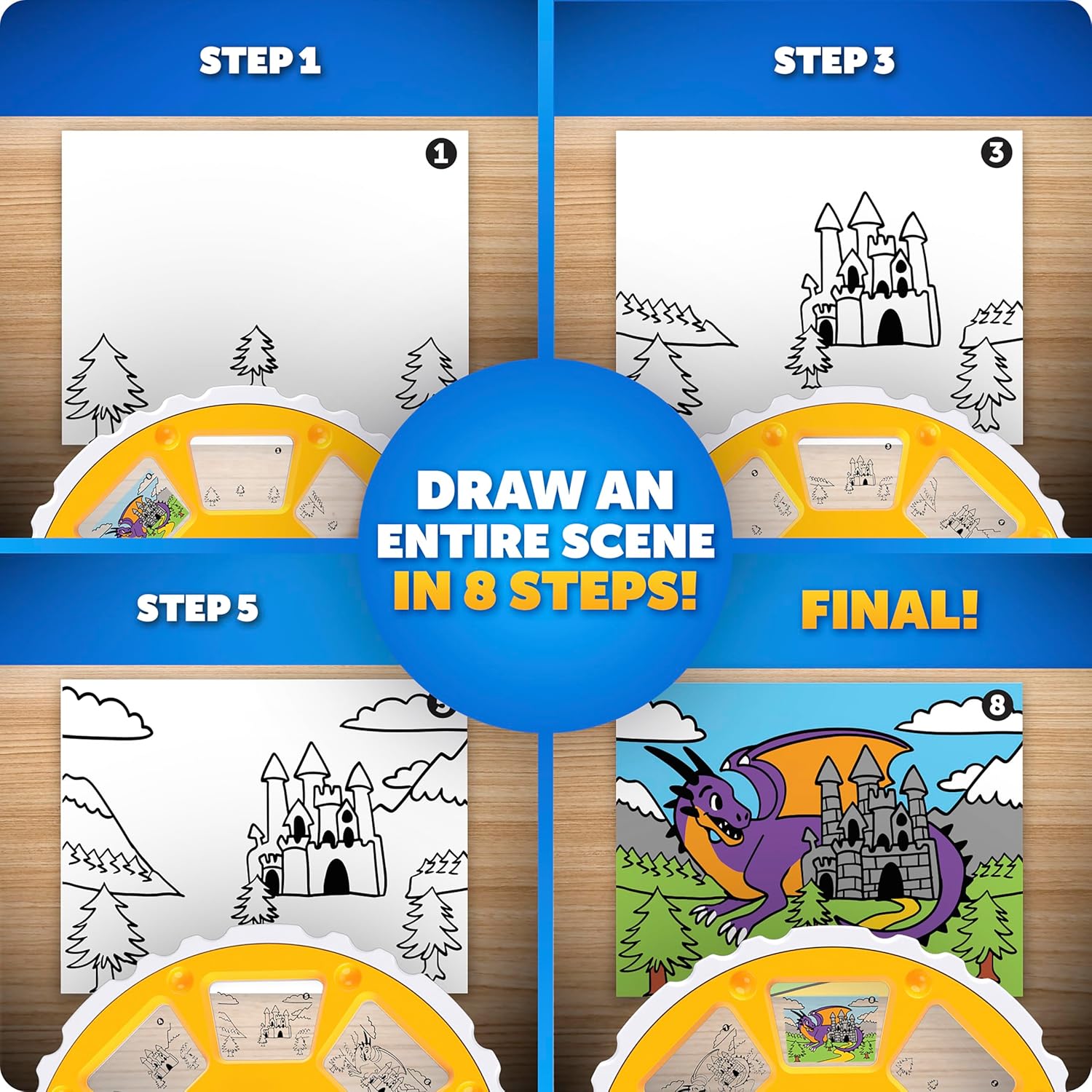 This complete creative package arrives loaded with 9 vibrant markers, 4 image discs featuring everything from fantasy scenes to step-by-step tutorials, plus room to mix in your favorite art supplies from home. Watch confidence bloom as kids discover they can draw!