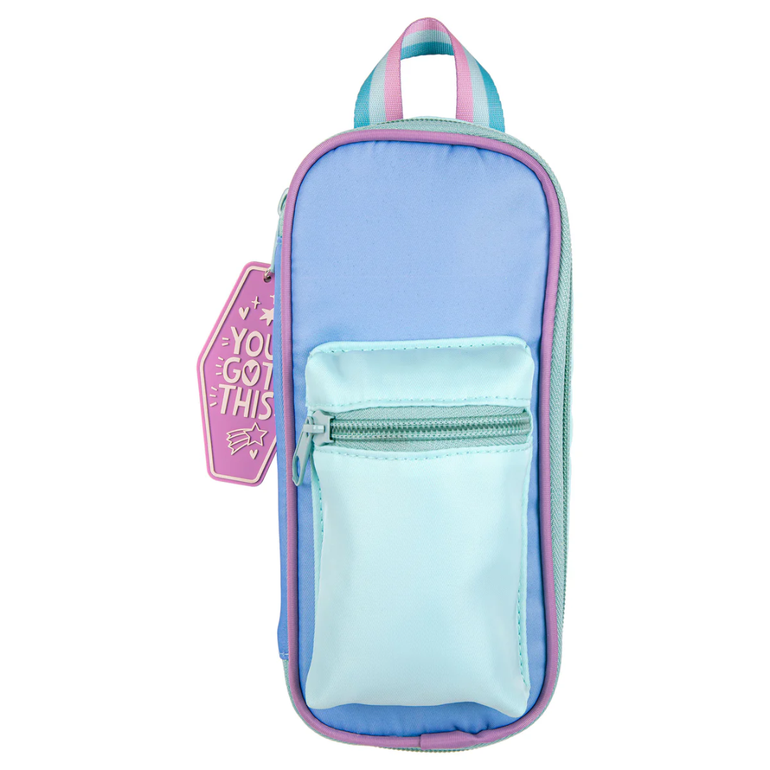 Bring a splash of excitement to your child’s school or art supplies with these colorful pouches. Spacious enough to fit all the must-haves for school, craft time, or on-the-go fun. Features vibrant pop colors, several zippered pockets for easy organization, and a matching keychain that shares a positive message.