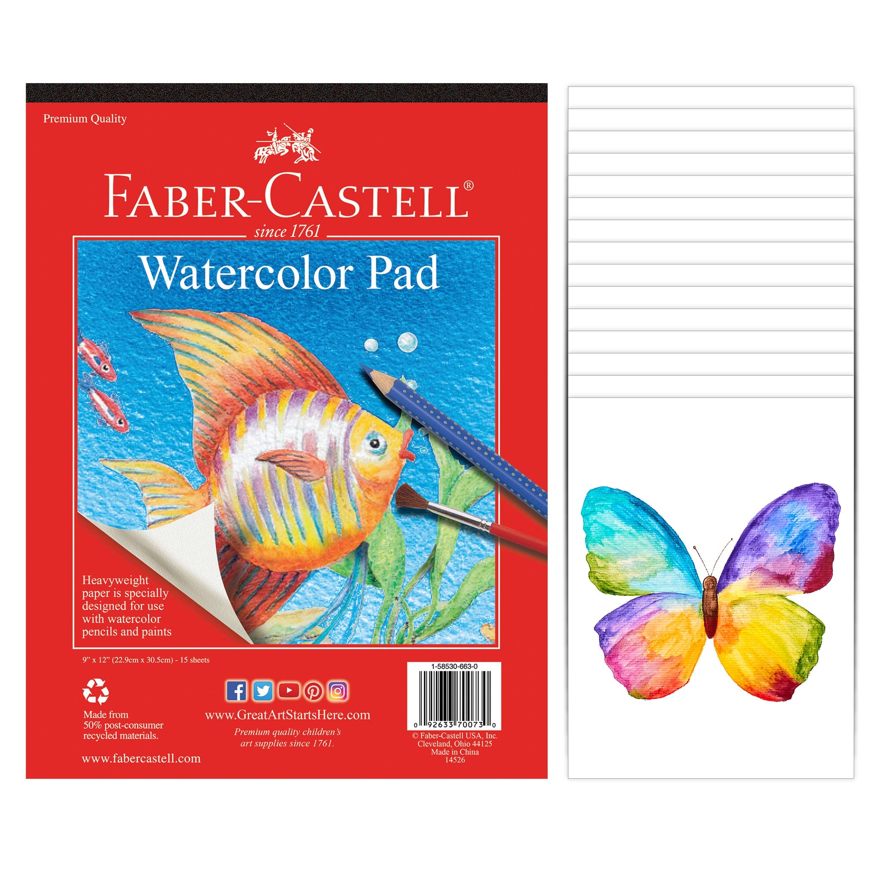 Use watercolor crayons, pencils, paints, and more on these watercolor paper sheets to create a wash of watercolor, or explore dry techniques with charcoal, crayons, graphite, and more! The Faber-Castell painting paper pad can be enjoyed by kids, beginners, and artists of all skill levels to explore mixed media art.