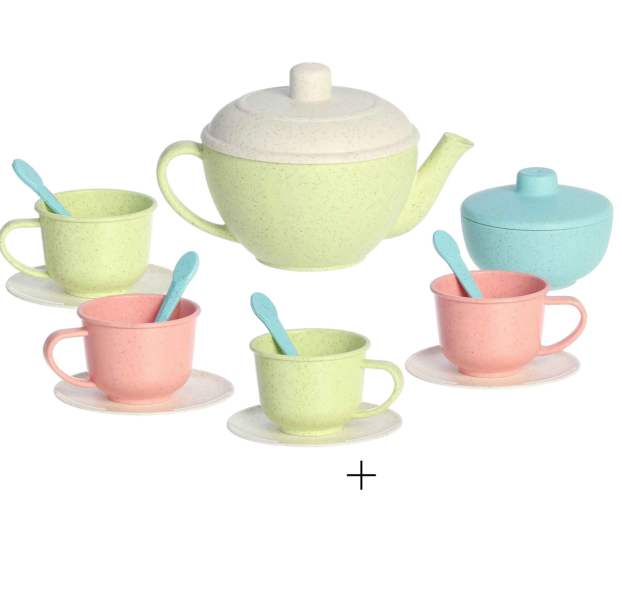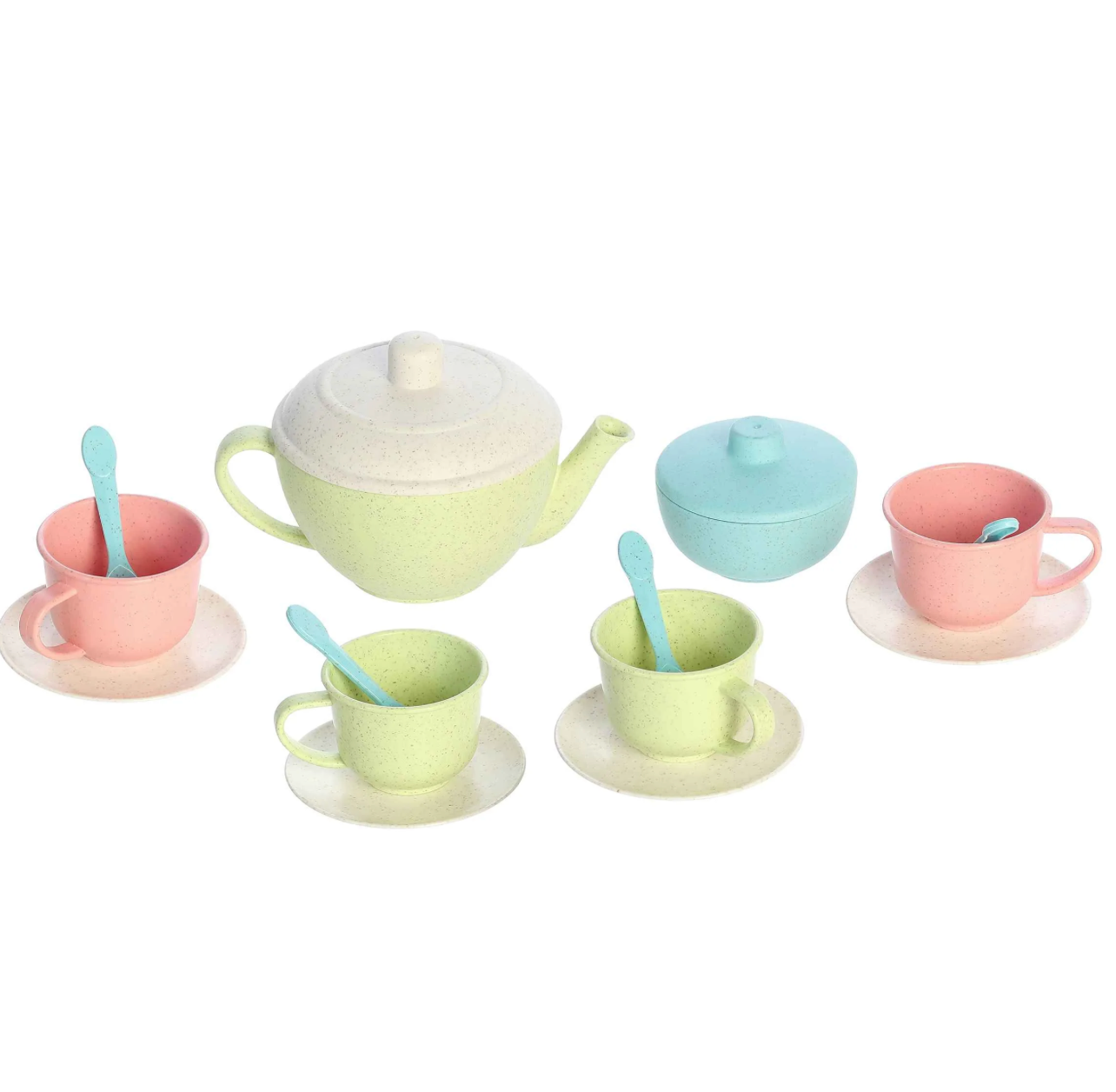 Introduce your child to the timeless tradition of tea time with the Wheatley Tea Set from Aurora Toys. This set is crafted from a unique wheat straw hybrid material, offering an eco-friendly alternative to conventional plastic toys. The set includes beautifully designed teacups, saucers, and a teapot, each featuring a charming matte finish in soft pastel colors that are as pleasing to the eye as they are to the touch.