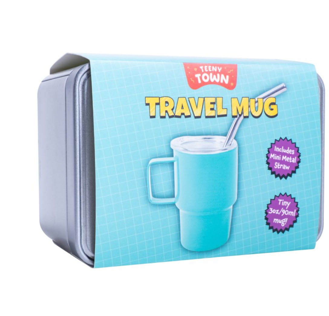 - Nestled inside its own compact tin, the Teeny Town Travel Mug is easy to carry and store, and makes a delightful novelty gift for friends, family, or anyone who loves all things cute and convenient.