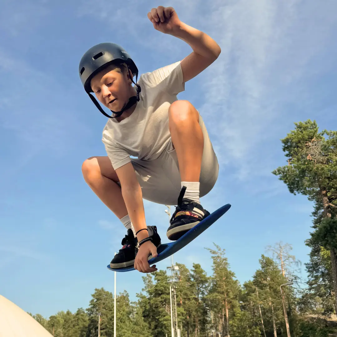 • Trick Rope – 24″ Adjustable rope, connects you to your board to assist with Ollies and Air Tricks. Can also be used as a handle when sliding on a hill and is a helpful tool for building balance confidence or boosting your airs!