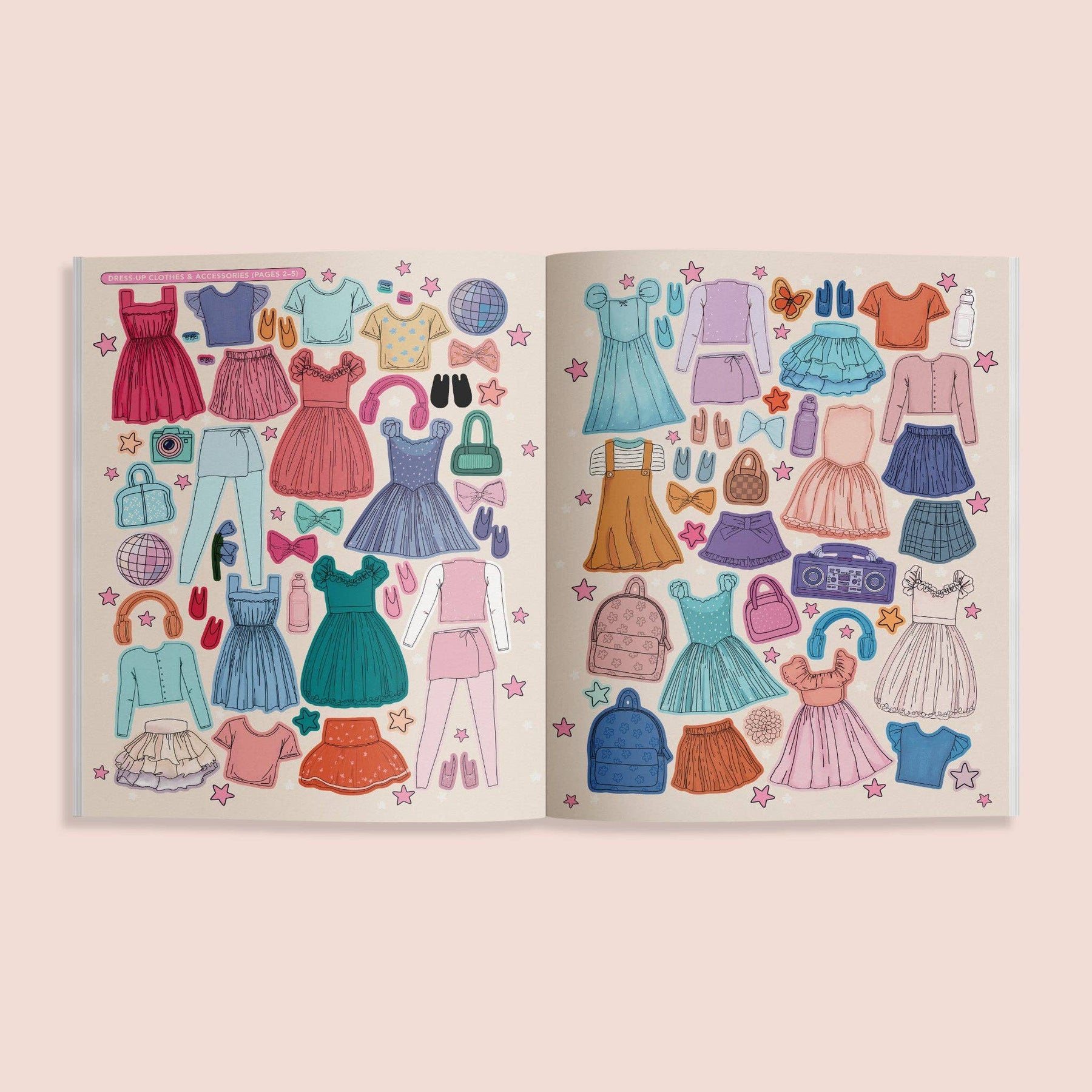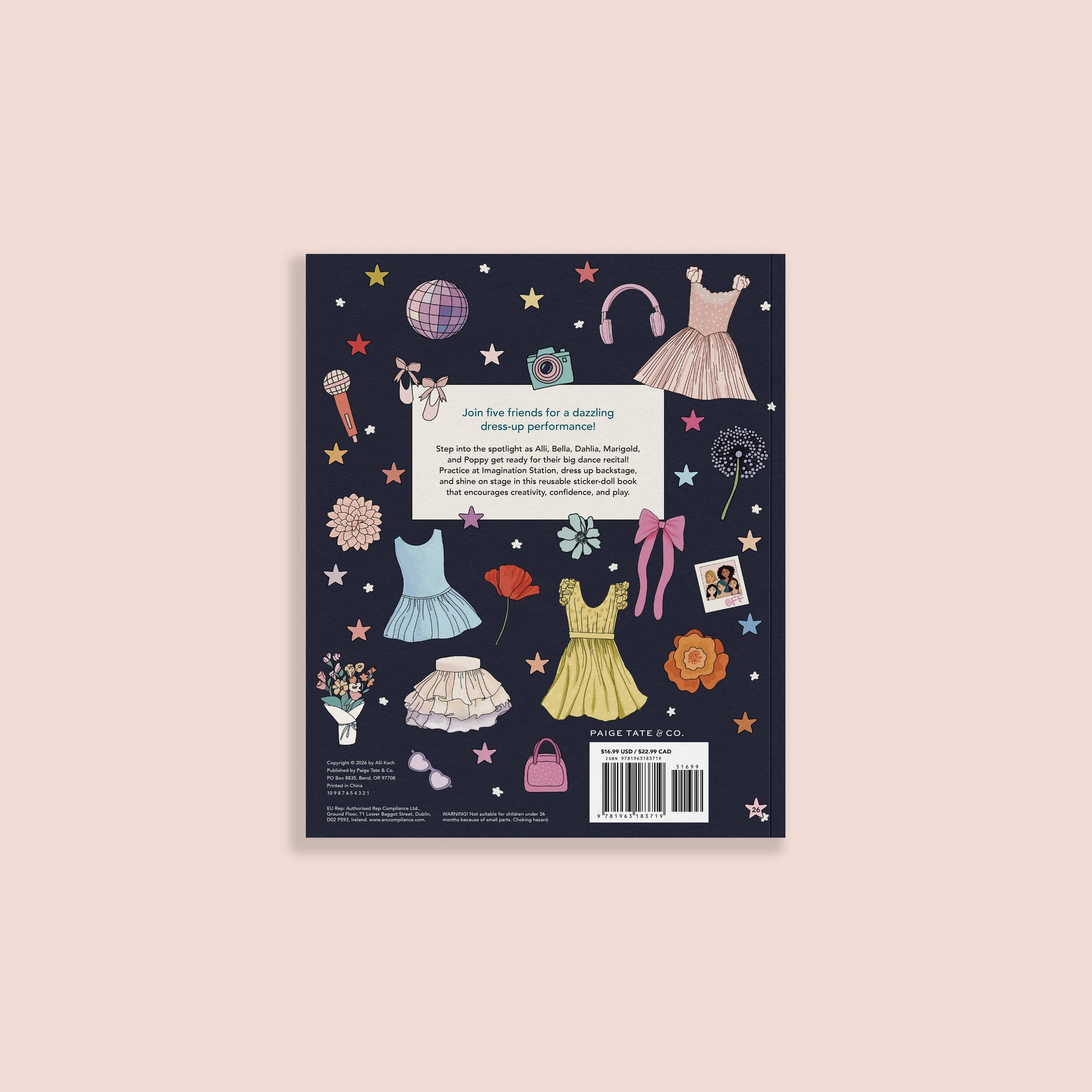 Packed with 500+ vibrant, reusable stickers created by bestselling artist Alli Koch (@allikdesign), this enchanting book includes a delightful array of clothing and accessories that can be mixed and matched across multiple characters, allowing for endless storytelling and imaginative play. Each page boasts perforated sticker sheets for easy removal, making it simple for little hands to dress their dolls and create their own unique scenes. • Over 500 reusable stickers, including two pages of shimmery foil • Dress-up play with vibrant mix-and-match outfits • Perforated sticker sheets for easy removal • Back pocket for sticker storage • Encourages creativity, storytelling & fine motor skills Categories: kids activity book, reusable stickers, dress-up play, dance, creative play, birthday gift, ages 5–8, arts and crafts, Dance recital,