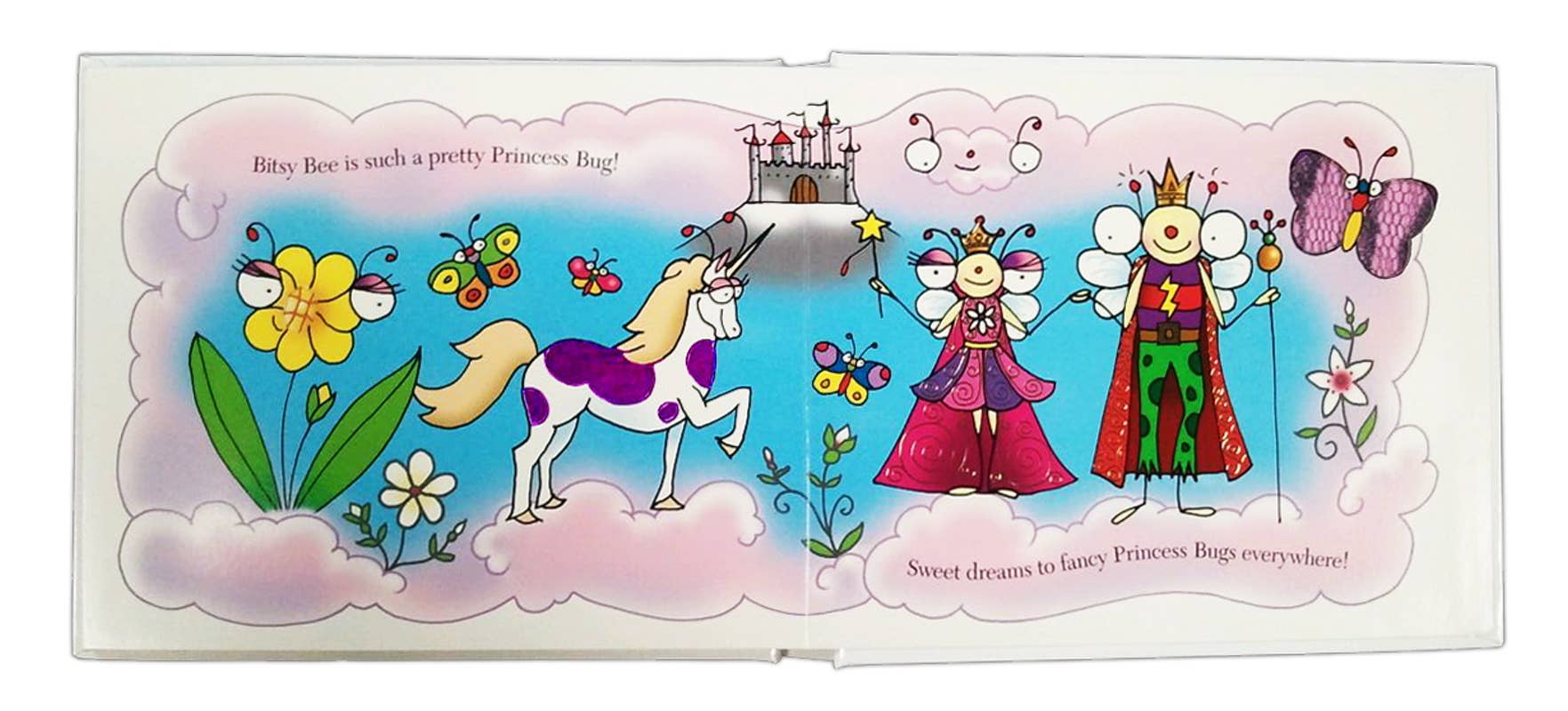 [Little Simon] Join Bitsy Bee as she journeys to a faraway land in this touch-and-feel Bugs adventure! Bitsy Bee loves reading about her favorite princesses in fairy tales. One night, Bitsy dreams that she has been transported to a magical land far away. Bitsy Bee has become part of her very own fairy tale! Join Bitsy as she discovers Flower Bugs, Unicorn Bugs, Cotton Candy Cloud Bugs, a handsome prince, and more in this interactive, touch-and-feel Bugs adventure!