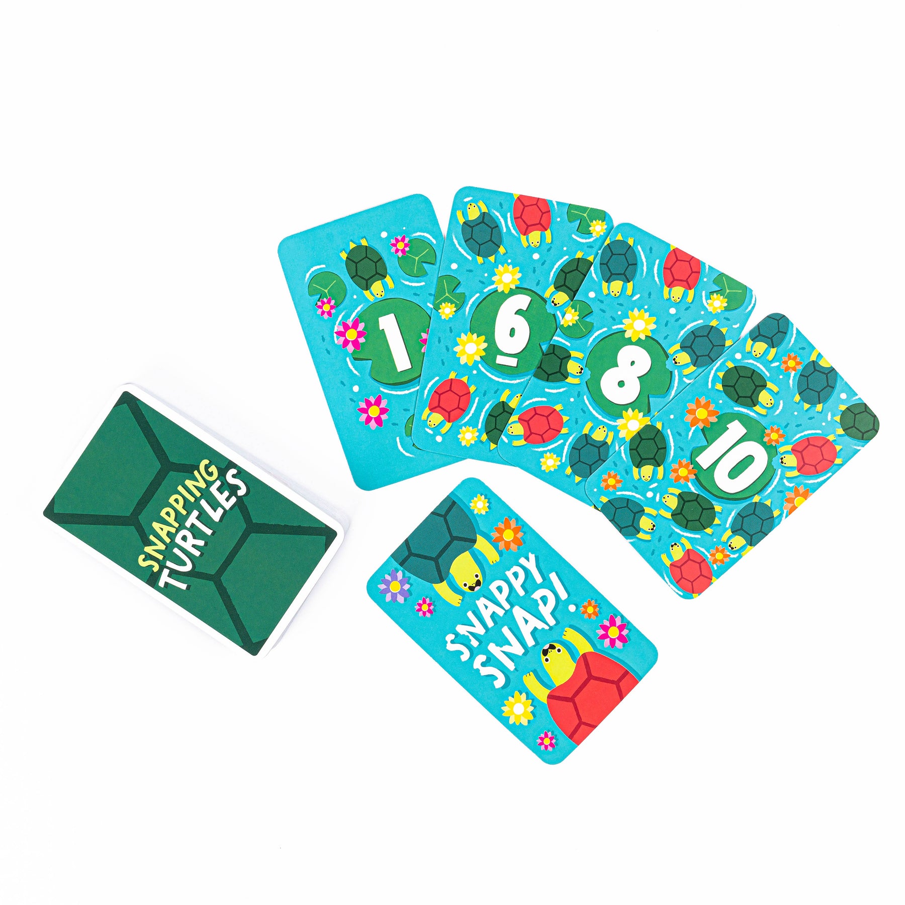 Race to react first when you spot matching turtle cards! Collect the most cards to win – but watch out for the snappy snap turtles in this fun twist on Snap!