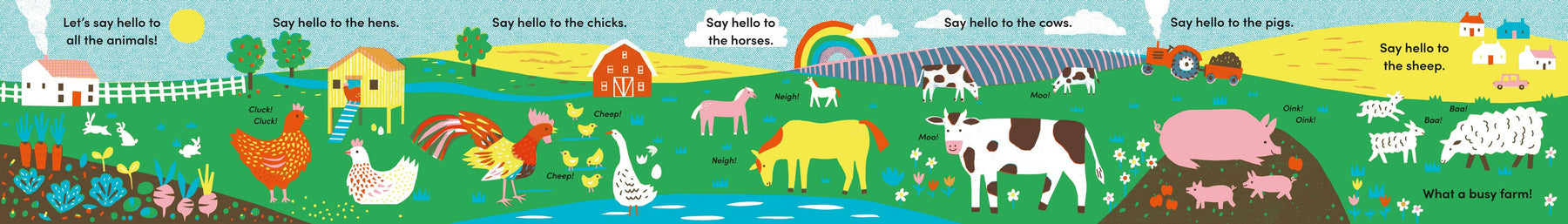 Featured on The Today Show! Make tummy time extra fun for little ones with this fold-out book with a mirror! Say hello to the animals on one side and a mirror for babies to see themselves on the other. This dazzling board book series is designed with tummy time in mind - a gentle exercise where a baby lies on their front to help strengthen their muscles and improve their head control. The fold-out format allows the book to be spread out in front of a baby, while the bold colors stimulate their developing eyesight. With bright, jaunty artwork from Louise Lockhart, this delightful new series will captivate even the wiggliest babies. Author: Lockhart, Louise PubDate: 45566 Age Range: Ages 0 to 3, Grades P to P Number of Pages: 14 Dimensions: 7.1 in H | 7 in W | 0.6 lb Wt Publisher Name: Nosy Crow Format Description: Board Book BISAC Category Description: Juvenile Fiction / Animals / Farm Animals